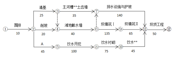 2.关键线路(节点表示),坝体1填筑节点工期能否满足度汛要求?