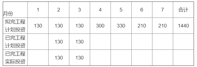 4、表中填写空格处的已完工程计划投资、已完工程实际投资,并分析7月末的投资偏差和进度偏差。