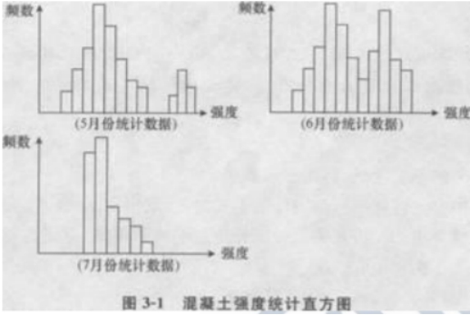基础施工5、6、7三个月混凝土试块抗压强度统计数据的直方图如图3—1所示。