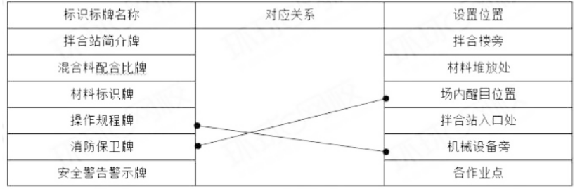 3.事件一中,拌合站简介牌还应标识的内容有哪些?复制下列表格到答题卡上,并按表中示例、用直线将“标识标牌名称”与最佳的“设置位置”一一对应连接起来。