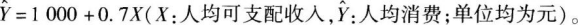 A.人均可支配收入每增加1元,人均消费将平均增长0.7元