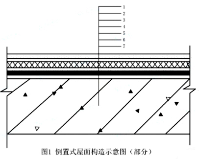 (1)工程采用倒置式屋面,屋面构造层包括防水层、保温层、找平层、找坡层、隔离层、结构层和保护层。构造示意图见图1;