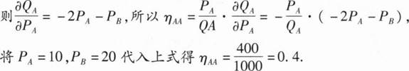 ,则当PA=10,PB=20时,商品A的需求量对自身价格需求弹性