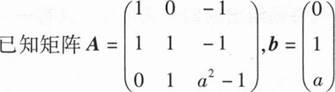 当a=1时,r(A)=r(A)=2<3,方程组Ax=b有无穷多解,故a=1.