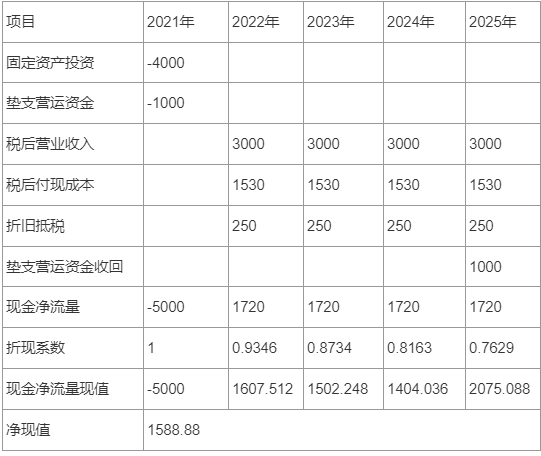(2)将新项目的增量现金流量进行列表,并回答是否值得投资。