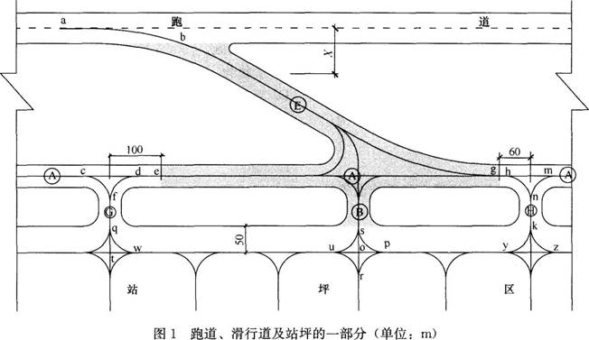 图1为该机场跑道、滑行道(由A、B、E、G、H表示)及站坪的一部分。图中阴影部分为需要整修的沥青混凝土道面。整修工程拟将沥青面层铣掉,重新铺筑SMA面层。施工方提供的沥青混合料配合比设计报告中的部分指标如下: